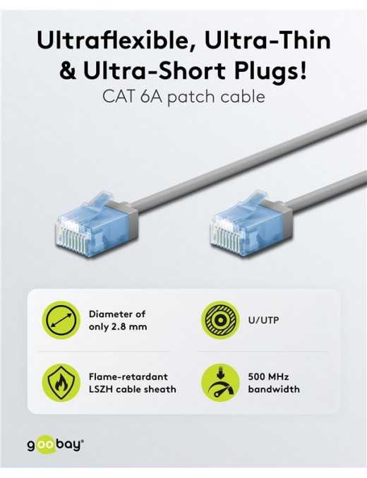 GOOBAY καλώδιο δικτύου 74219, CAT 6A U/UTP, slim, copper, 500MHz, 0.15m, γκρι